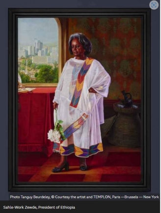 Kehinde Wiley has done 11 paintings featuring a series of portraits of African heads of state, including Ghanaian President Nana Akufo-Addo, Nigerian former President Olusegun Obasanjo and Ethiopia’s President Sahle-Work Zewde.
