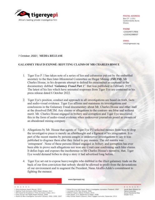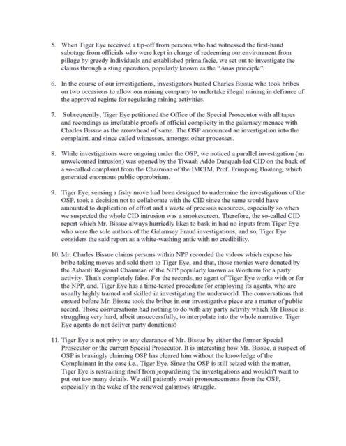 Below is a copy of Tiger Eye P.I.'s reaction to statements by Charles Bissue on the matter:![]()