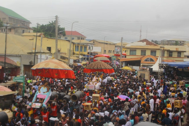 It is held to mark the bumper harvest and to thank the 77 deities of the Oguaa Traditional Area.
