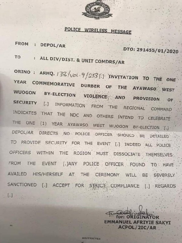 Part of the police message read: "Indeed all police officers within the region must dissociate themselves from the event. Any police officer found to have availed his/herself at the ceremony will be severely sanctioned."