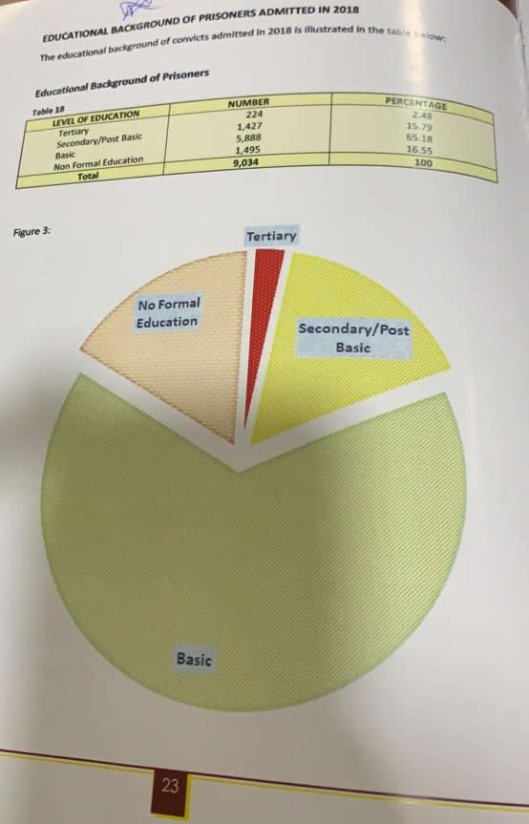 Basic school leavers top the list of prisoners in the country, according to the Prisons Service’s 2018 Annual Report.