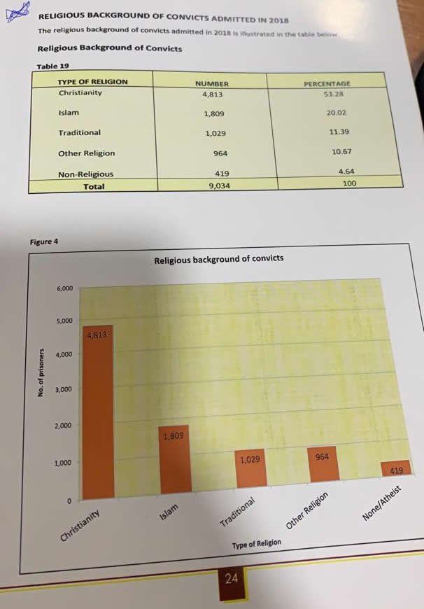 The report also indicates that out of the total number of convicts admitted in 2018, 4,813 representing 53.28 per cent were Christians while 1,809 practised Islam.