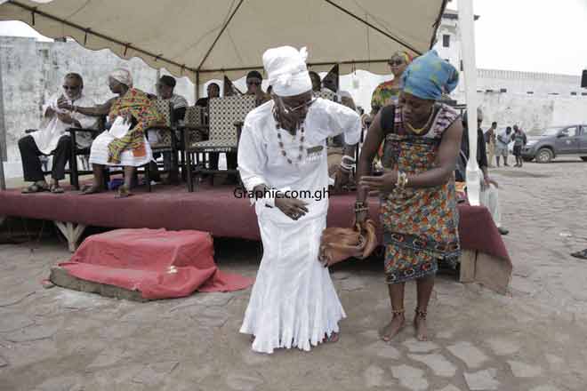The "family" from the diaspora were welcomed back home by Nana Amba Eyiaba, Kontihemaa of the Oguaa Traditional Area, after which they joined traditional "brothers and sisters" for a "love feast".