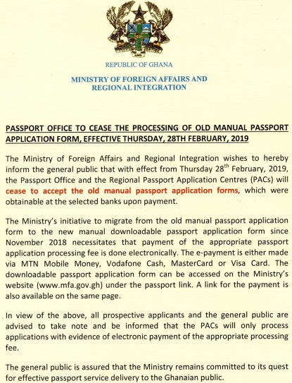 According to the Ministry, it is part of an initiative to migrate old manual passport application forms to the new manual downloadable passport application forms.