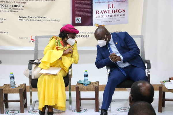 Mrs. Nana Konadu Agyeman-Rawlings, who spoke at the launch of JJ RAWLINGS, MEMORIES AND MEMENTOS, a collection of poetry and essays put together in tribute to President Rawlings by the Pan-African Writers Association (PAWA), said the former President inspired many on the continent and beyond. She described as heartwarming, the fact that members of PAWA did not hesitate to write down their emotions over the sudden loss of a formidable African personality.