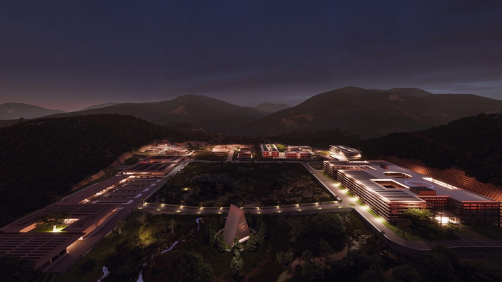 The buildings themselves are shaped by the use of natural and local materials, including rammed earth, clay bricks, timber, and composite earth slabs. These provide warmth and familiarity for occupants while supporting sustainable construction. Residences for staff and families are embedded into the landscape to maintain a close connection with the natural surroundings. Meanwhile, clinical and research facilities are framed with low-carbon concrete screens inspired by Kente weaving patterns, embedding elements of Ghana’s ancestral identity into the fabric of the architecture.