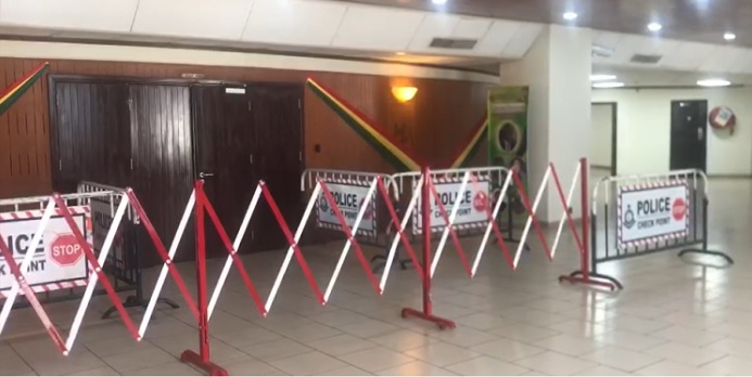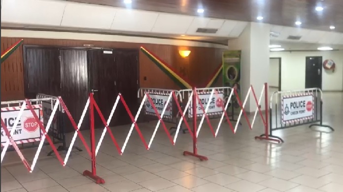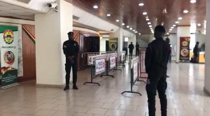The heightened security measures are in place to prevent four Members of Parliament, who were suspended by the Speaker, from entering the chamber ahead of today’s sitting.