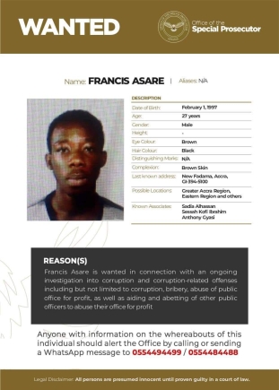 The Office of the Special Prosecutor (OSP) in Ghana has published wanted notices for three individuals involved in ongoing investigations related to corruption and corruption-related offences.