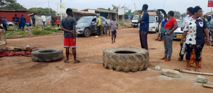 A group of young people in Kpone, within the Kpone Katamanso Municipality of the Greater Accra Region, have staged a demonstration to protest poor roads, water shortages, and unresolved land boundary disputes in the area.