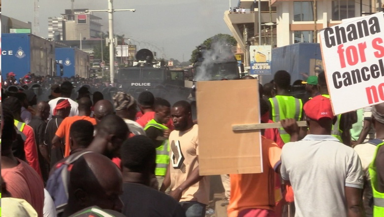 The demonstrators clashed with the police following disagreements over routes prescribed for the march. The High Court had on Monday directed that the march be restrained to routes proposed by the police and should run between 8am and 4pm, but the demonstrators who say they had appealed against the court decision, insisted on sticking to their original plan - to picket at the frontage of Jubilee House into the night.