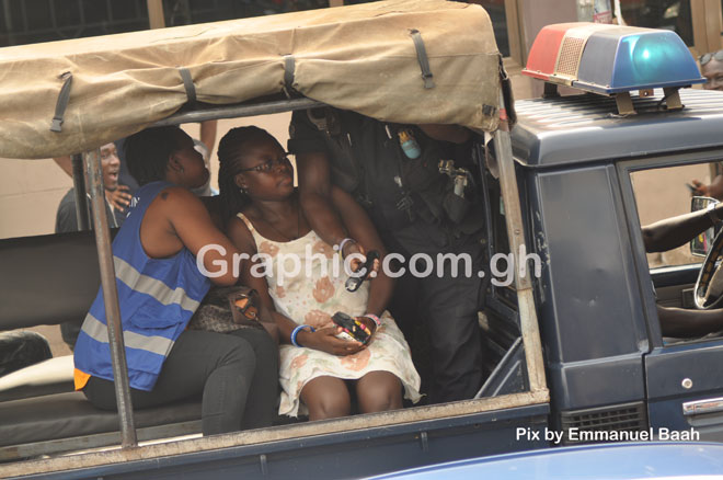 According to an eye witness, Akua Benewaa, she was in her room on the first floor of the building when she saw the two exchanging the EC reflective jackets embossed with Polling Official at the back.