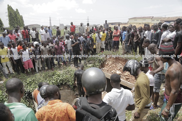 PHOTO: People waiting at the entrance of the tunnel to have a glimpse of the suspected armed robber. Picture: EMMANUEL ASAMOAH ADDAI