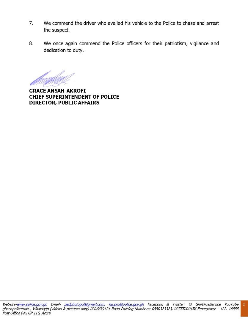 A police statement dated June 14, 2022, signed and issued by the Director of Public Affairs, Chief Superintendent Grace Ansah-Akrofi named the two officers who have been promoted as Inspector Azumah Komal Justice and Lance Corporal Felix Diameh.