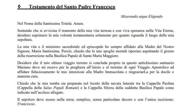 The Vatican released the Pope's final testament, in which he outlined his request to be buried "in the ground, without particular ornamentation" but with the inscription "Franciscus".