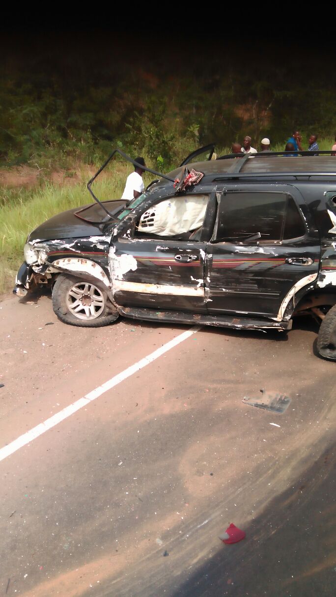 According to an eye witness, the driver of the bus with registration number AS 8823 – 10 was grazed by a Toyota V8 Sequoia with registration number GT 170 – 15 in his attempt to avoid hitting a man identified to be a lunatic.