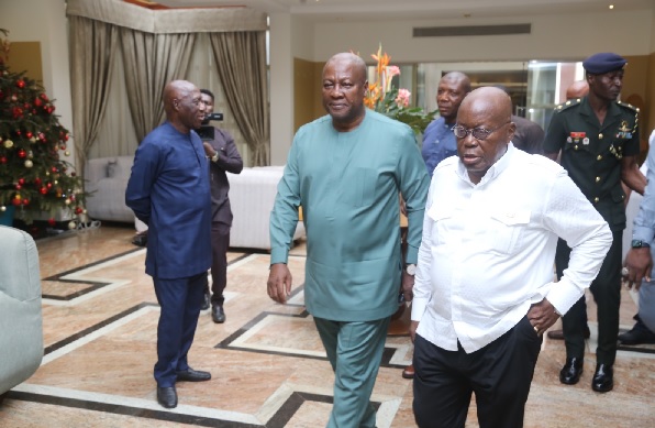 President Nana Addo Dankwa Akufo-Addo on Monday welcomed President-elect John Dramani Mahama and Vice President-elect Prof. Naana Jane Opoku-Agyemang to the Jubilee House, the seat of the Presidency.