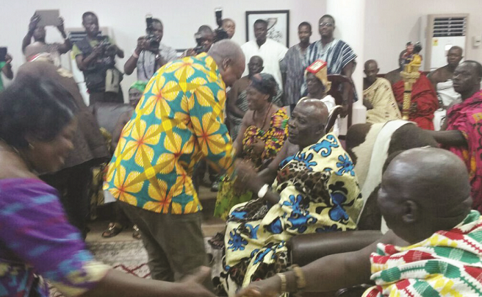 President Mahama earlier held a closed-door meeting with the Okyenhene, Osaagyefuo Amoatia Ofori Panin II at his palace in Kyebi.