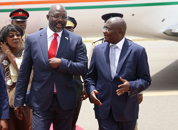 Vice-President Bawumia welcoming President George Weah to Ghana
