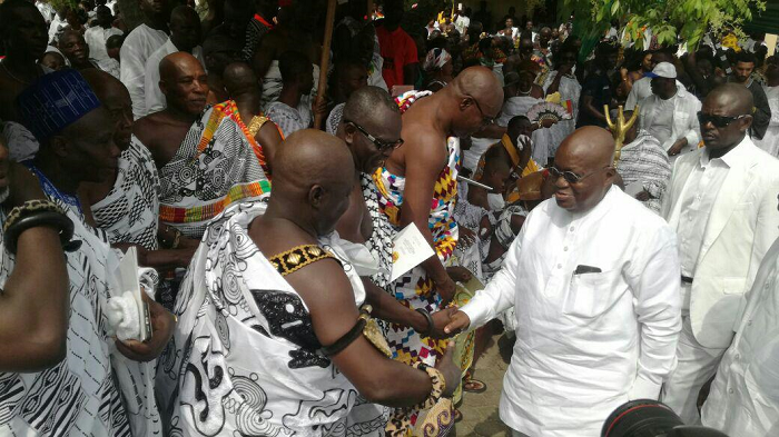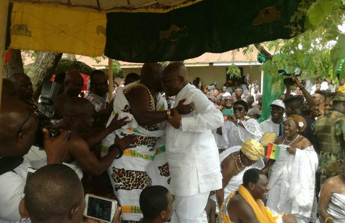 The Okyenhene Osagyefuo Amoatia Ofori Panin, welcoming President Akufo-Addo