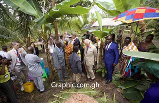 The visiting Prince of Wales, Prince Charles on Sunday paid a working visit to a cocoa farm at Kona in the Sekyere South District of the Ashanti Region as part of his four-day tour in Ghana.