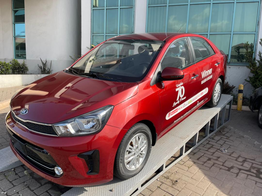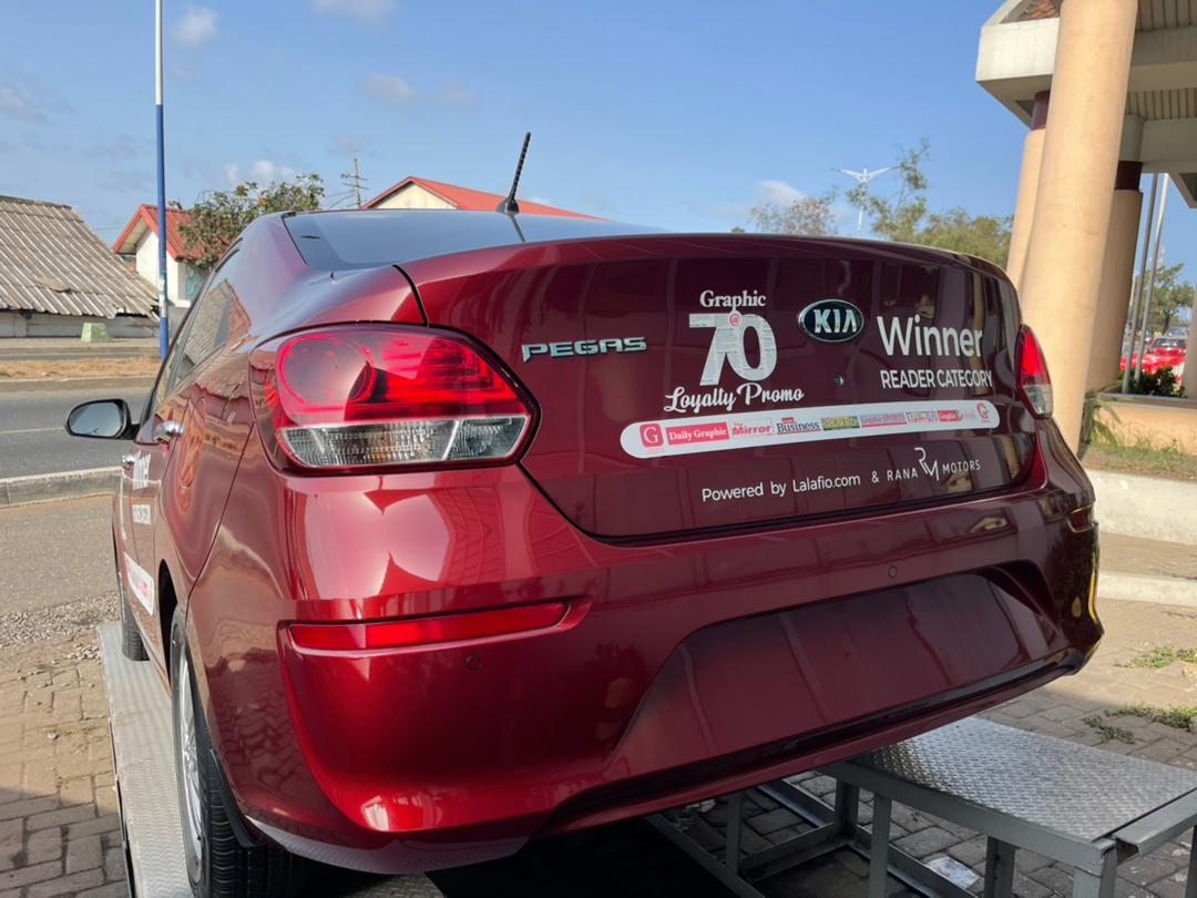 A 53-year-old Kasoa based businessman, Mr Prince Hayford, has won the first KIA Pegas sedan vehicle in the Graphic@70 Loyalty promo.
