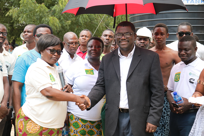 The Headmistress of Odorgonno SHS in handshake with the GM (CWRAO), Mr Fred Aryeetey