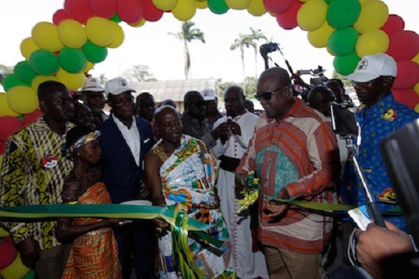 President Mahama cutting the tape to inaugurate the railway line