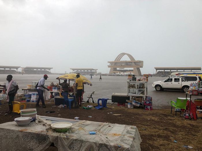 The national parade of this year’s May Day celebration at the Independence Square in Accra was nearly disrupted by rains.