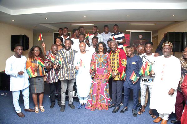 The Tourism Minister with some team members of the Black Star before their departure to Egypt for the AFCON tournament