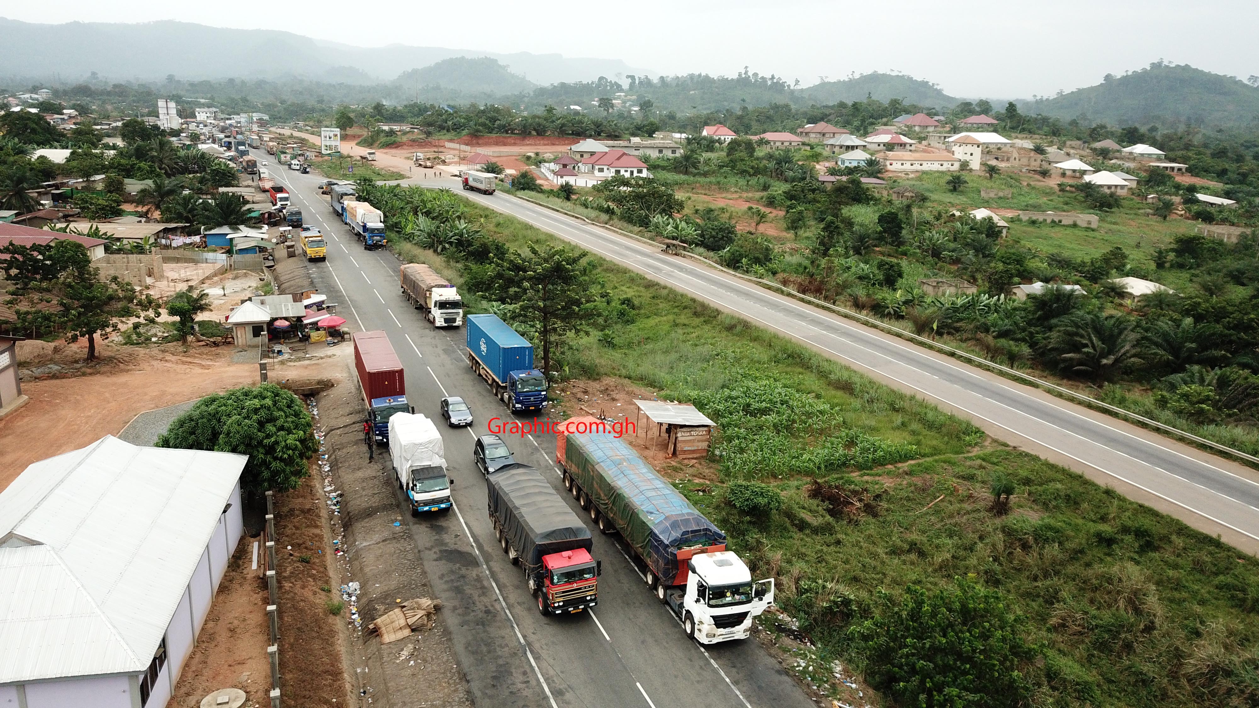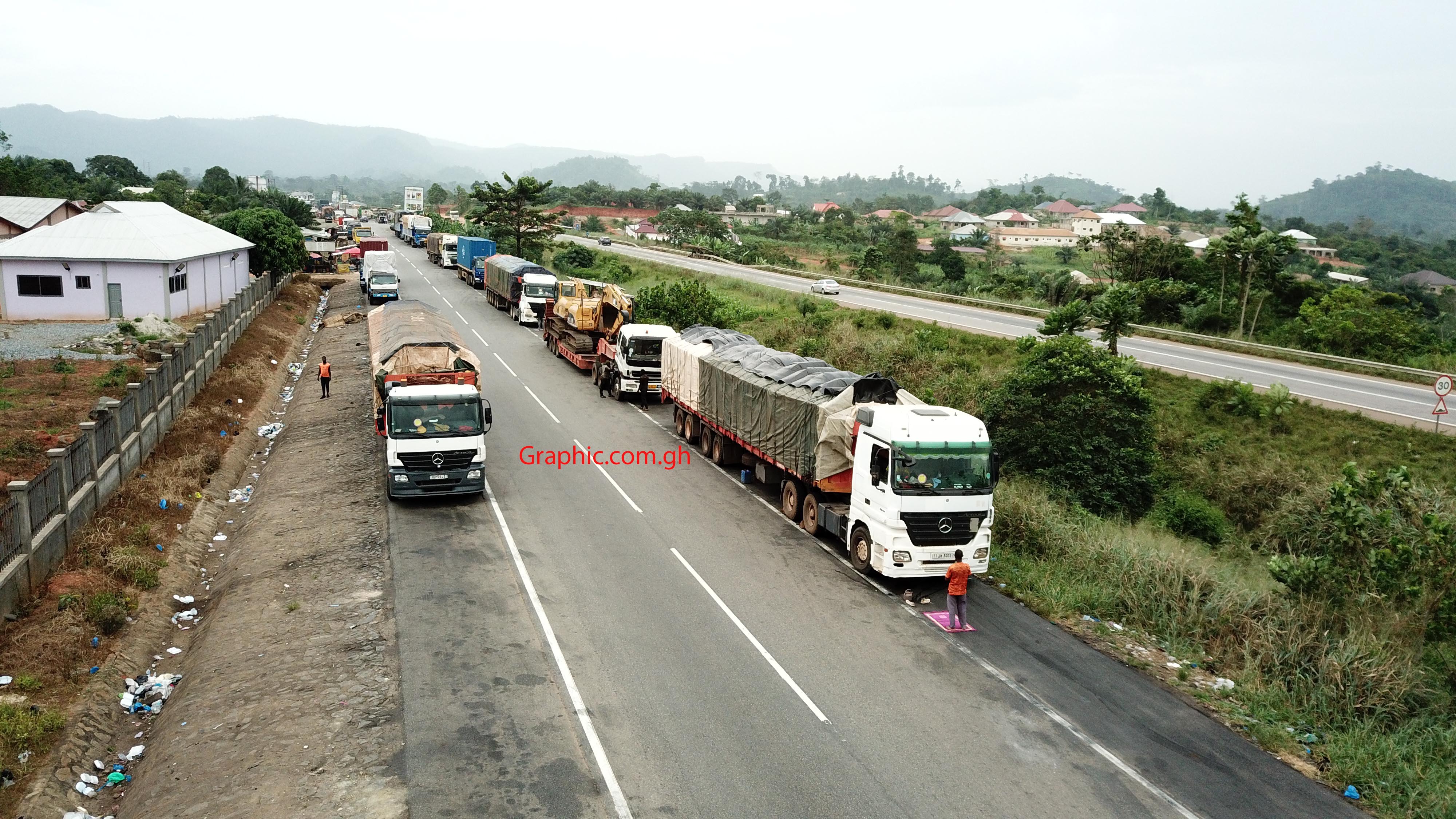 The Daily Graphic further observed that trucks were parked on both shoulders of the road, leaving a narrow passageway for Accra- and Kumasi- bound vehicles.