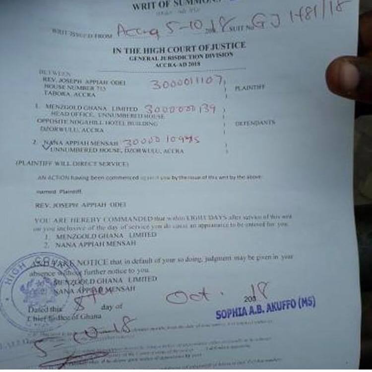 A Reverend Minister has dragged gold trading firm Menzgold Ghana Limited, and its Managing Director, Nana Appiah Mensah to court for breach of contract in relation to an investment of Gh₡24,000 in the company’s gold business.