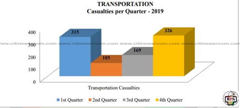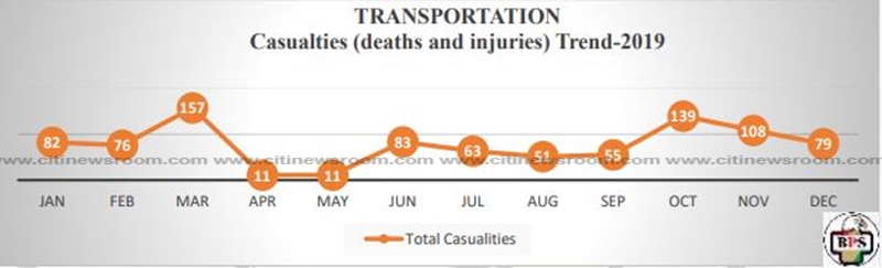 A report published by the Bureau of Public Safety (BPS) and dubbed Ghana Public Safety and Crime Report (BPS Watch) indicates that transportation-related incidents accounted for the majority of deaths and injuries in Ghana.