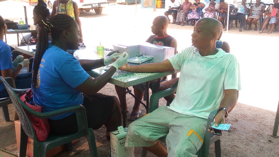 The health screening dubbed Rotary Family Health Days-Ghana took place at the Kojo Sardine bus stop and was held under the theme: Healthy Families, Healthy Communities.