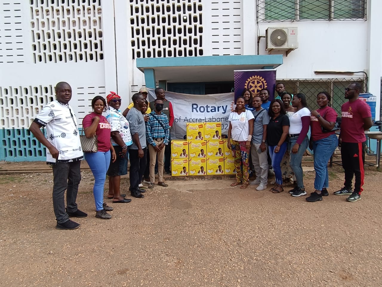 At their first port of call last Saturday, the club led by Rotarian President (RP) Mrs Theresa Ama Afro Agbodo donated a year's supply of sanitary towels to the 33 female inmates at the Pantang Hospital while 2,200 packs of sanitary towels and boxes of shaving sticks were donated to the students at the DEMODEAF.