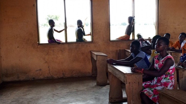 The overflow of the River Oti has brought education in the Kucha Electoral Area of the Saboba District of the Northern Region to a standstill, forcing fisherfolk to convert an abandoned school building into a workshop for mending nets.