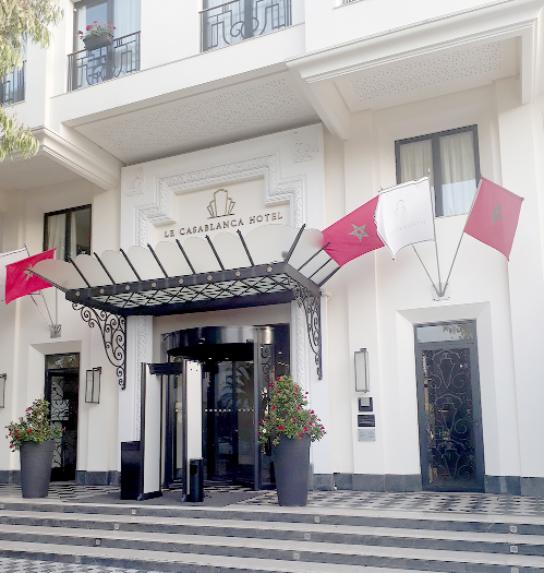 Le Casablanca Hotel where journalists stayed. The city of Casablanca, the business capital of Morocco is dominated by buildings and structures painted white