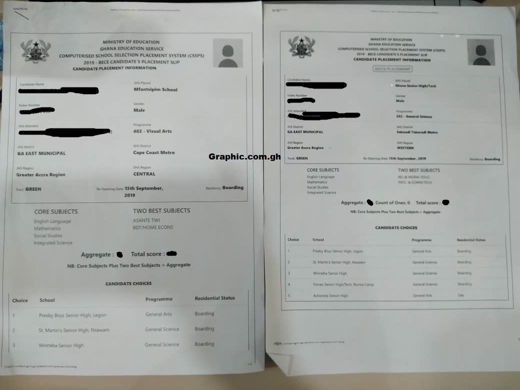 Although the Education Minister pointed out that the fake slips lacked vital information such as the type of placement (whether automatic or self-placement), the track, re-opening date and residency, an earlier self-placement slip available to Graphic Online failed that test.