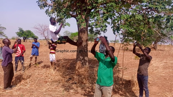 But it is not for shade or leisure, the tree has become their only hope of catching a faint mobile signal.