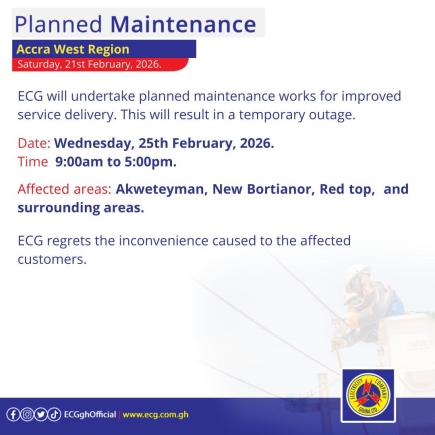 The Electricity Company of Ghana (ECG) has announced a series of planned and emergency maintenance works across several regions this week, resulting in temporary power outages in multiple communities.
