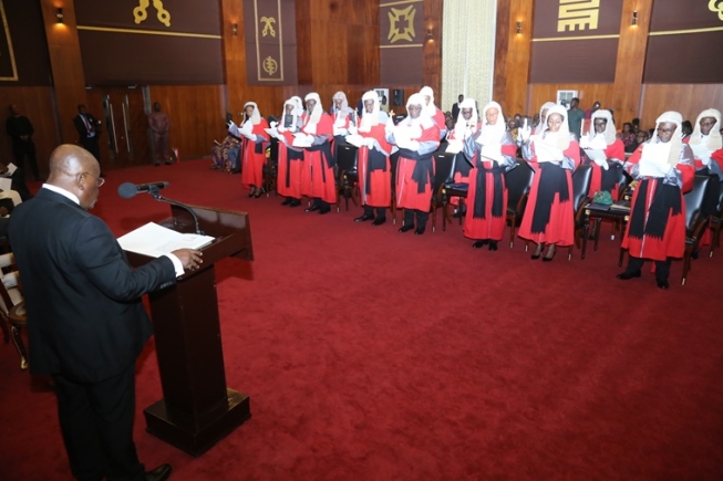 President Akufo-Addo administered three oaths -- the Oath of Office, Oath of Secrecy and Judicial Oath -- to the 16 justices comprised of 12 men and four women. The President said that the Chief Justice decided, with the support of the Judicial Council, to establish permanent panels of the Court of Appeal in five locations across the country.