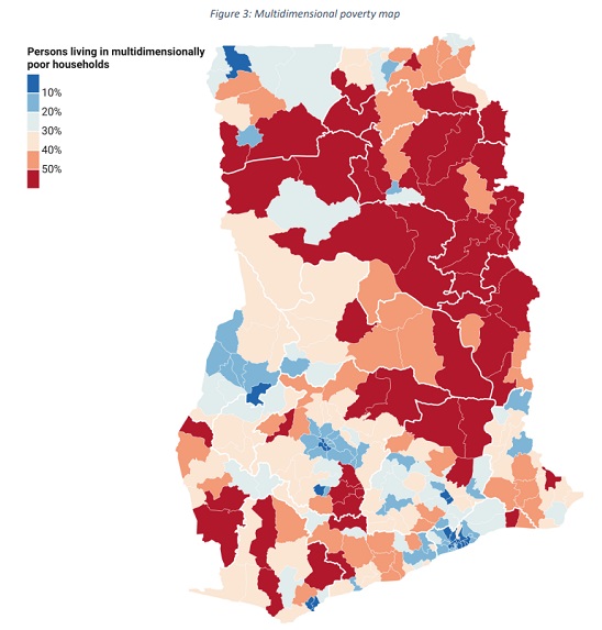 The Ghana Statistical Service (GSS) has revealed that in 50 out of the 261 districts (19.2%), more than half of the household population is multidimensionally poor.