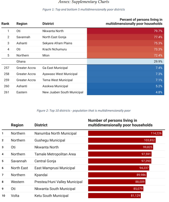Three of the districts in the top 10 with the highest poverty rates are in the Northern Region with North East and Oti regions having two districts each.