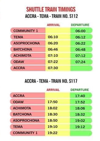 See the schedule for the new Accra-Tema Train Service