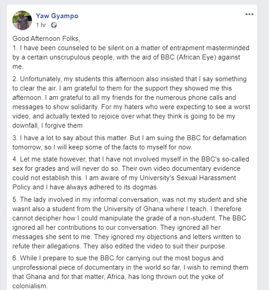 - Ransford Gyampo: I'll sue BBC over 'Sex for grades' documentary
