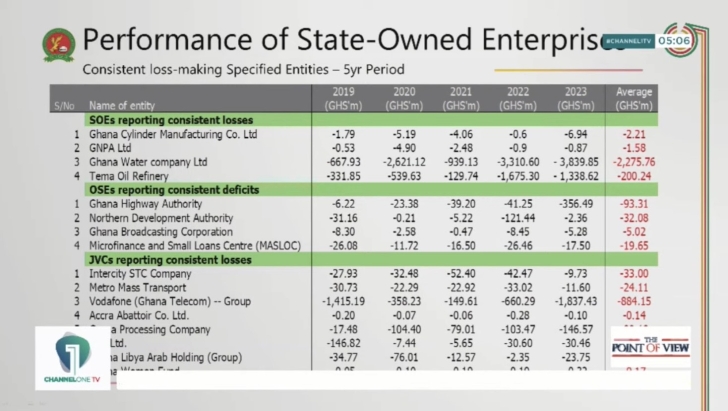 Speaking on Channel One TV, he identified Ghana Water Company Limited, Ghana Cylinder Manufacturing Company Limited, Tema Oil Refinery, Intercity STC, Ghana Highway Authority, and Metro Mass Transport as some of the institutions struggling financially.