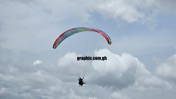 Taking off from the Odweanoma Mountain near Atibie, the pilots soared over several towns, including Obomeng, Mpraeso and Nkwatia, for about 30 minutes before landing at the Nkawkaw Sports Stadium. Their display marked the official start of the four-day paragliding event, which runs from Friday, April 3, to Monday, April 6.
