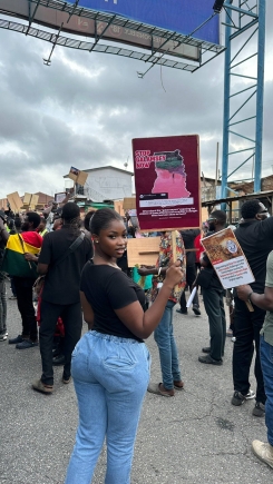Protesters, many of whom were dressed in red to symbolise their anger, marched through the streets of Accra, singing, dancing, and waving placards with messages such as "Stop Galamsey Now" and "Free Our Activists."