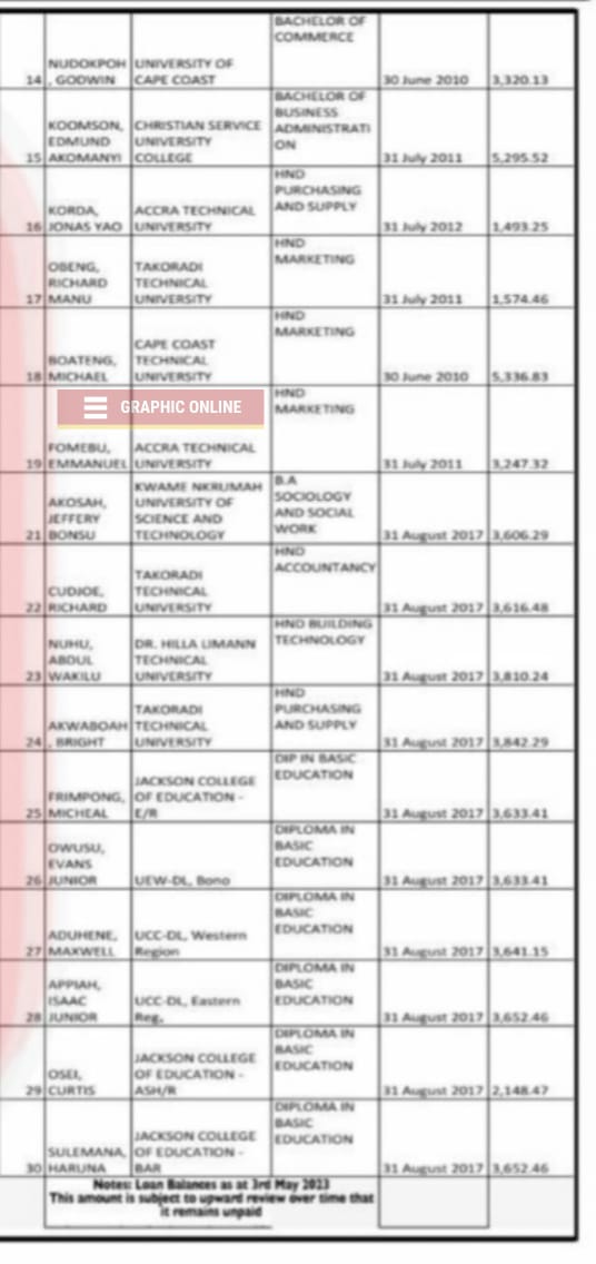 Student Loan Trust Fund publishes names of defaulters (LIST)