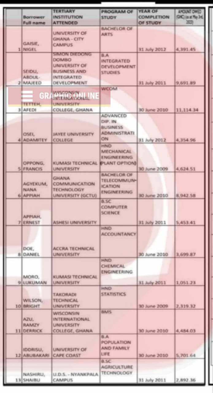 The publication, featured in the May 22 edition of the Daily Graphic, aims to bring attention to borrowers who have defaulted on loan amounts ranging from ¢1500 to ¢11,000.