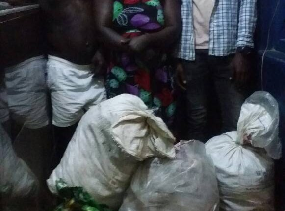 The police has arrested three persons, including a female at Abenabo near Suhum in the Eastern Region for allegedly having in their possession 11 sacks of dried leaves suspected to be marijuana.